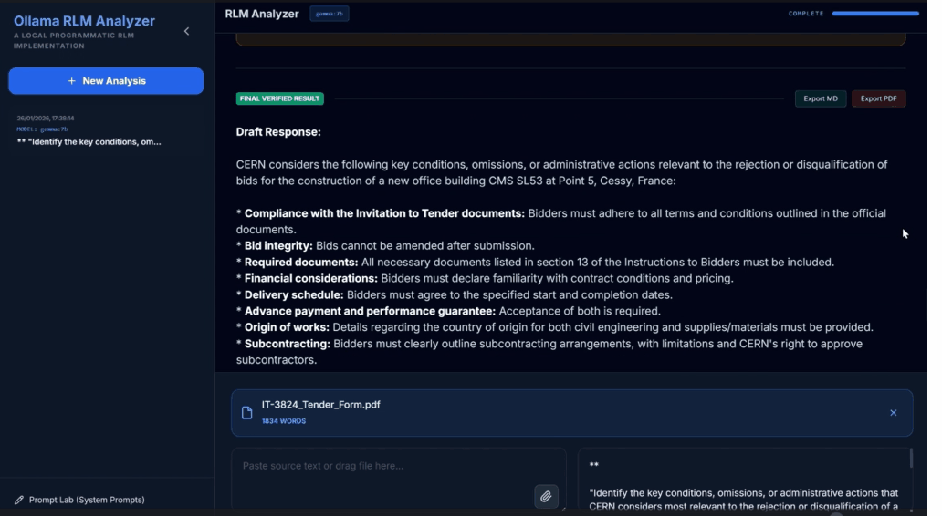 The animated demo below shows an analysis of a sample tender ( downloaded from the web (using the Gemma3:7B model).